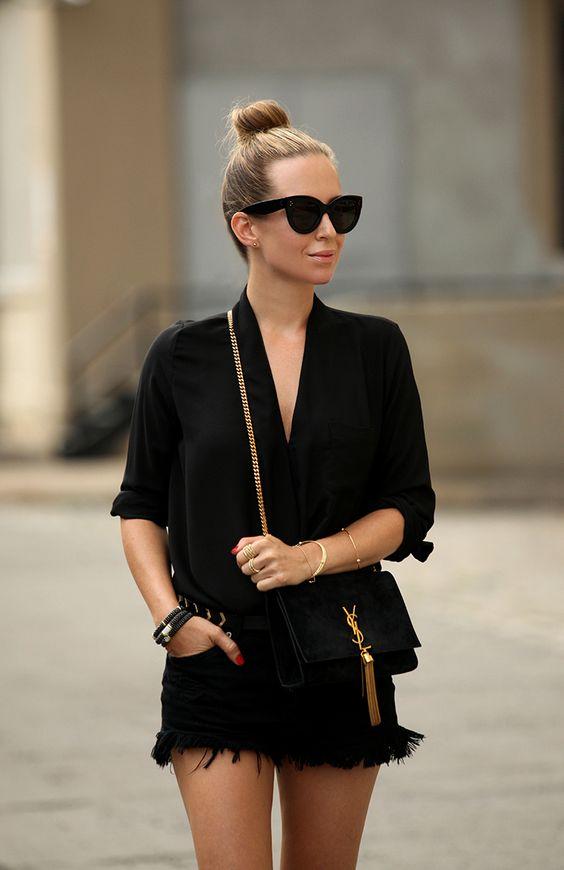Θέλεις να κάνεις μια ιδιαίτερη βραδινή εμφάνιση; Τότε, συνδύασε ένα μαύρο σορτσάκι με ένα μαύρο πουκάμισο, το οποίο θα το έχεις περάσει μέσα από το σορτσάκι. Δίνει την ψευδαίσθηση μια πολύ εντυπωσιακής και ιδιαίτερης ολόσωμης φόρμας και φυσικά είναι πολύ σικ!