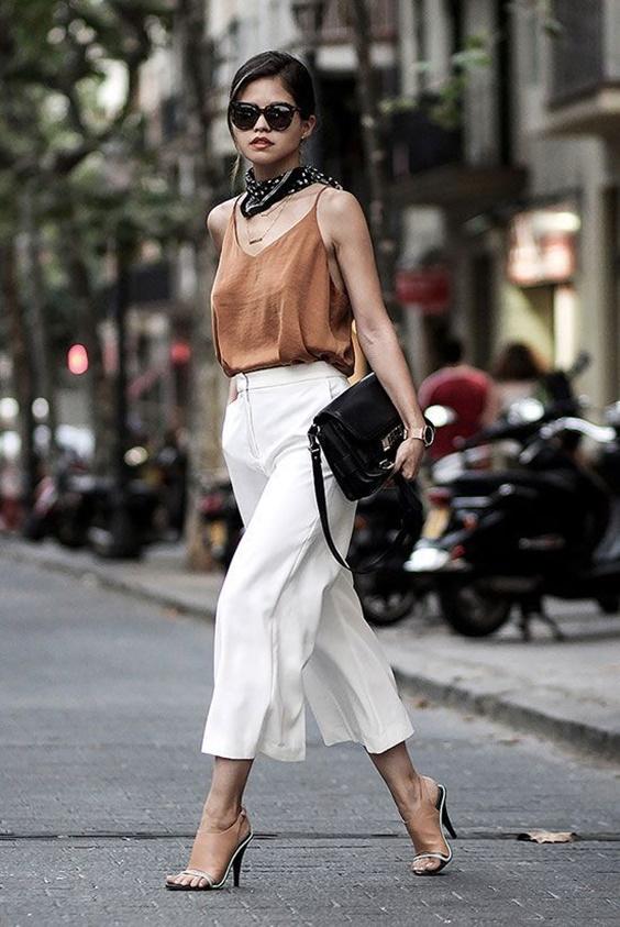 Το χρώμα του παρακάτω look du jour παντελονιού είναι ιδανικό τόσο για ανοιχτόχρωμες όσο και για σκουρόχρωμες επιδερμίδες. Προτίμησε το τους καλοκαιρινους μήνες, όπου θα αναδείξει πολύ έντονα το μαύρισμα σου και θα σε κρατήσει δροσερή.