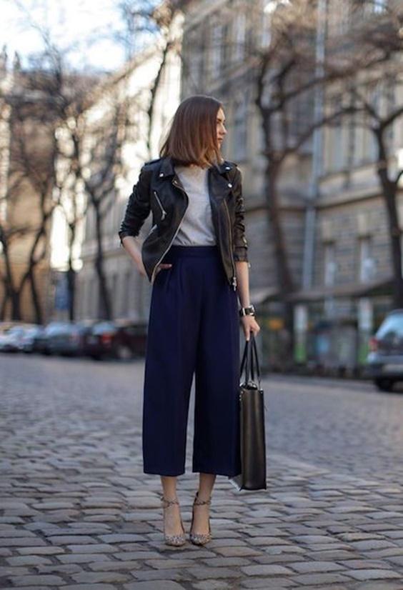 Άλλη μια επιλογή με look du jour παντελόνι αν θέλεις να πας μια χαλαρή βόλτα με το άλλο σου μισό ή την κολλητή σου. Το δερμάτινο jacket δίνει μια rock νότα στο σύνολο σου και εμείς το εγκρίνουμε απόλυτα. Αν είσαι μαθήτρια ή φοιτήτρια, το παρακάτω ντύσιμο θα είναι μια πολύ safe και άνετη επιλογή για το σχολείο ή τη σχολή σου.