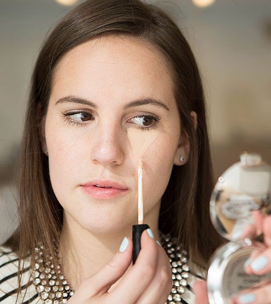 Μπορεί να έχετε συνηθίσει να βάζετε «σταγόνες» και μετά να τις απλώνετε, αλλά ο καλύτερος τρόπος είναι να σχηματίσετε ένα τρίγωνο κάτω από το μάτι μέχρι την μέση από το μάγουλο.