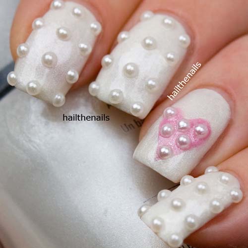 Αν πάλι σας αρέσει να παίζετε με υπέροχα σχέδια στα νύχια σας, μπορείτε να δημιουργήσετε οτιδήποτε σας αρέσει με την βοήθεια μικρών ή μεγάλων περλών. Χρησιμοποιήστε τις για να κάνετε γραμμές, πουά σχέδια, καρδιές, ακόμη και χριστουγεννιάτικα δέντρα. Το αποτέλεσμα θα κάνει τα νύχια σας άκρως εντυπωσιακά και πρωτότυπα. Οι ιδέες για μανικιούρ με πέρλες που ακολουθούν είναι μόνο μερικές προτάσεις που μπορείτε να δοκιμάσετε. Βάλτε την φαντασία σας να δημιουργήσει και κλέψτε τις εντυπώσεις.