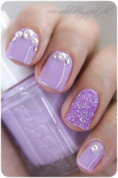 Μωβ – λιλά νύχια με διακοσμητικές πέρλες και sugar look