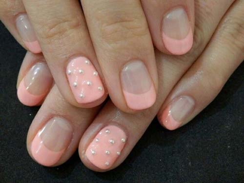 Ροζ απαλό γαλλικό μανικιούρ με διακοσμητικές πέρλες σε ροζ βάση