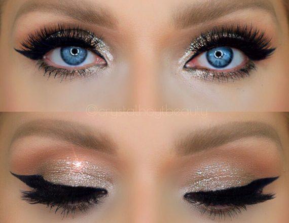 Μεταλλικές σκιές στα μάτια με γκλίτερ και eye liner