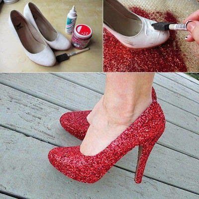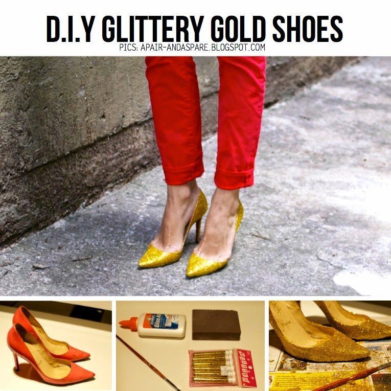 Η να ψεκάσετε τα παπούτσια με ένα σπρέι και να κολλήσετε χρυσόσκονη