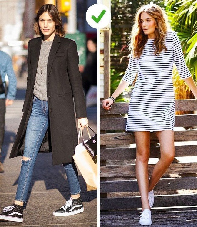 Ένα άνετο φλοράλ φόρεμα και αθλητικά παπούτσια; Σίγουρα όχι. Είναι καλύτερα να επιλέξετε ένα φόρεμα με ένα απλό κόψιμο. Επιπλέον, συνιστάται να επιλέξετε τα παπούτσια σε σπορ στυλ, αντί για τα κλασικά πάνινα παπούτσια. Αν εξακολουθείτε να θέλετε να τα φορέσετε, είναι προτιμότερο να επιλέξετε κάτι πολύ ουδέτερο όπως ένα ίσιο παλτό χωρίς επιπλέον λεπτομέρειες, όπως η Alexa Chang.