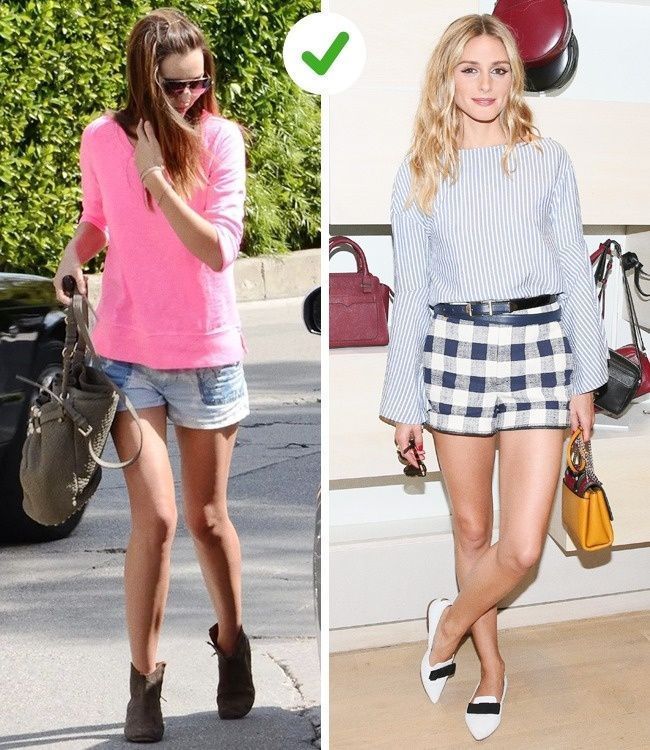 Επιλέξτε χαλαρά σχέδια από ένα πυκνό ύφασμα που στέκεται καλά και δεν τσαλακώνει. Τα σορτς από δαντέλες και άλλα λεπτά υφάσματα, που μοιάζουν περισσότερο με εσώρουχα, κάνουν το κάτω μέρος να μοιάζει μεγαλύτερο και ταιριάζει πραγματικά σε λίγους ανθρώπους. Φυσικά, το top πρέπει να είναι χαλαρό και όχι πολύ ανοιχτό. Μια άλλη καλή ιδέα είναι να φορέσετε σορτς με ποιοτικά παπούτσια και τσάντες, όπως η Olivia Palermo