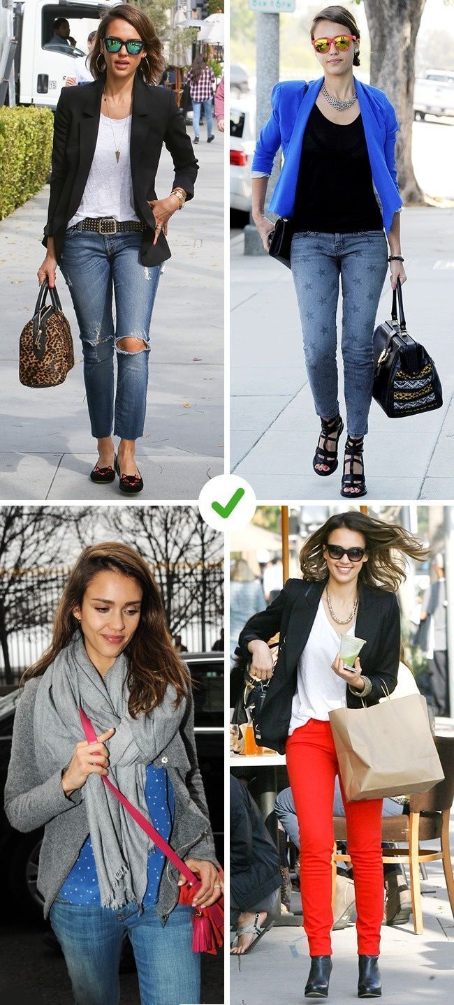 Μπορείτε να φτιάχνετε ατελείωτα cool σύνολα από ένα τζιν, αρκετά tops, ένα σακάκι, μια ζακέτα ή ένα δερμάτινο μπουφάν. Και αν αγοράσετε μερικά ζευγάρια γυαλιά ηλίου και κασκόλ που ταιριάζουν με τα ρούχα σας, το πρόβλημα του “πώς να ντυθώ” έχει ήδη λυθεί για όλη την άνοιξη. Η Jessica Alba είναι ένα εξαιρετικό παράδειγμα για εσάς!