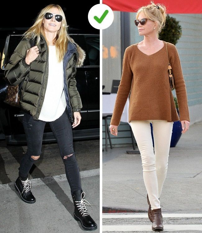 Συχνά ακούμε ότι οι γυναίκες που γίνονται 30 δεν μπορούν να φορούν μίνι φούστες. Δεν συμφωνούμε! Τι θα γινόταν αν κάποιος ανακάλυπτε αυτό το θαύμα; Το μόνο που χρειάζεστε είναι να ακολουθήσετε έναν πολύ γνωστό κανόνα: το top πρέπει να είναι κλειστό. Ένα ακόμη πράγμα: είναι καλύτερα να επιλέξετε ένα ελαφρώς χαλαρό top, να κρύψετε την κοιλιά και να αποφύγετε τις πλεκτές φούστες. Αντ ‘αυτού, επιλέξτε εκείνες που διατηρούν το σχήμα τους ,όπως η Miranda Kerr στην “σωστή” φωτογραφία.