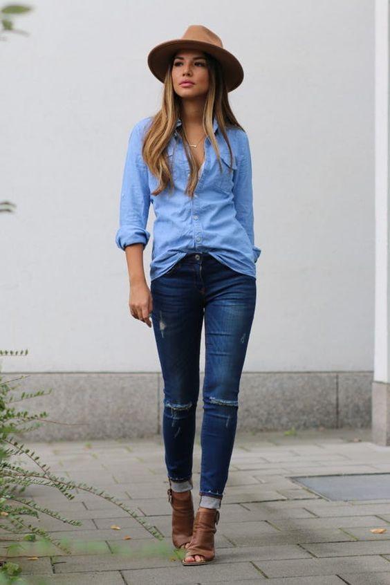 Το ανδρόγυνο είναι απίστευτα σεxυ κι εσύ μη φοβηθείς να το επιλέξεις. Ένα μπλε κλασικό πουκάμισο συνδυασμένο με το αγαπημένο σου jean κι ένα…καουμπόικο καπέλο, είναι αυτά που θα σε κάνουν να μαγνητίσεις τα βλέμματα. Άσε τα μαλλιά σου ελεύθερα, όπως η κοπέλα της φωτογραφίας, ή πιάσε τα μια χαμηλή και μαλακή κοτσίδα.