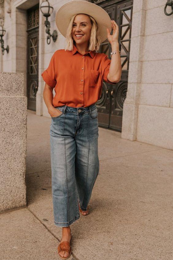 Την Άνοιξη μη φοβηθείς να βάλεις χρώμα στη ζωή σου. Το πορτοκάλι είναι ένα έντονο χρώμα, που μόνο την Άνοιξη και το Καλοκαίρι, μπορείς να το φορέσεις χωρίς…τύψεις! Συνδύασε λοιπόν το πορτοκάλι σου πουκάμισο με μια jean παντελόνα για πιο vintage εμφανίσεις. Εναλλακτικά, μπορείς να το βάλεις και με ένα κλασικό jean.