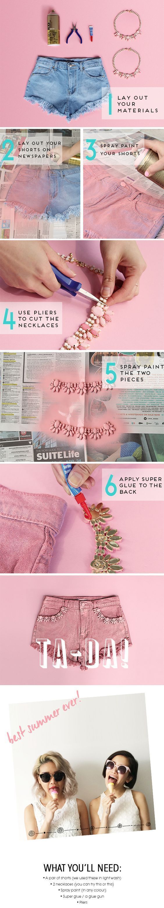 Πάρτε μερικά παλιά κολιέ σας και ανανεώστε τα παλιά σας σορτσάκια με τον πιο μοδάτο τρόπο