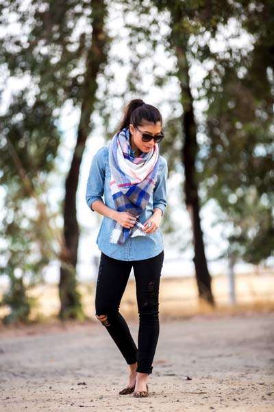 Αγαπημένη επιλογή αποτελεί το τζιν παντελόνι στα κλασσικά του χρώματα, είτε σε μαύρο. Το πασπαρτού αυτό κομμάτι της γυναικείας γκαρνταρόμπας μπορεί να συνδυαστεί με τοπ όλων των ειδών. Φορέστε τα με ένα αέρινο μπλουζάκι με έξω τους ώμους και τα sneakers σας, δημιουργώντας ένα όμορφο φθινοπωρινό ντύσιμο για καφέ, ψώνια, αλλά και μια χαλαρή βόλτα με φίλους. Εναλλακτικά φορέστε ένα μαύρο φθαρμένο τζιν με πουκάμισο και ένα blanket scarf ή μια πασμίνα.