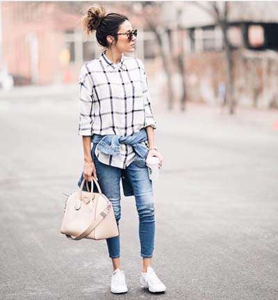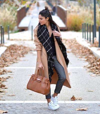 Αν όμως αναζητάτε ένα πιο chic casual look, μπορείτε να φορέσετε ένα υφασμάτινο παντελόνι, με ένα απλό μπλουζάκι και τα sneakers σας. Προσθέστε επίσης ένα μεγάλο μαντήλι στο λαιμό και μια καμπαρντίνα, αν ο καιρός το απαιτεί. Μάλιστα τα μεγάλα μαντήλια – πασμίνες, που αποτελούν και κορυφαία τάση στα αξεσουάρ για την εποχή, δεν προσθέτουν μόνο στυλ, αλλά και χρώμα σε ένα σύνολο.