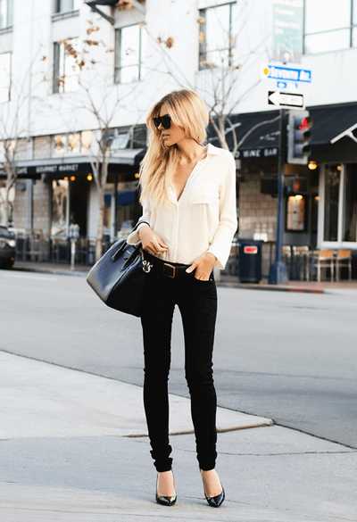 Ιδανικό και πάντα αγαπημένο σύνολο αποτελεί το μαύρο παντελόνι με το λευκό πουκάμισο. Πρόκειται για μια all time classic επιλογή ντυσίματος που ταιριάζει τέλεια τόσο με τις ψηλές γόβες ή τα ankle boots, όσο και με μπαρέτες, μπαλαρίνες και oxford shoes.
