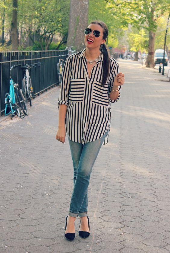 Επιλέξτε μακριές πουκαμίσες ή φορέματα με κάθετες ρίγες. Αυτή η επιλογή σχεδίου θα σας κάνει να φαίνεστε πιο ψηλή και πιο αδύνατη ενώ καλύπτει την περιοχή της κοιλιάς.