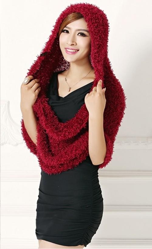 Περάστε τα χέρια σας μέσα από την τρύπα του κασκόλ και τραβήξτε το προς τους ώμους σας και το επάνω μέρος του κορμού σας. Σηκώστε το επάνω μέρος πάνω από το κεφάλι σας για να σχηματίσετε την κουκούλα. Το κάτω μέρος θα πρέπει να κρέμεται χαλαρά πάνω από το στήθος.