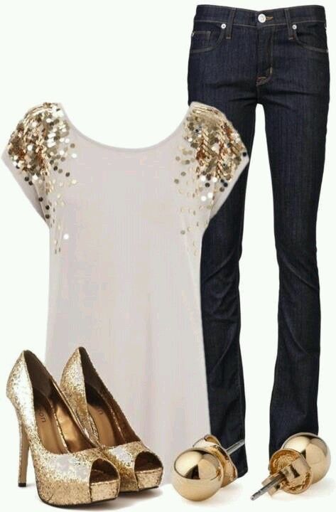 Ακόμη και το αγαπημένο σου τζην αν το συνδυάσεις σωστά μπορείς να το φορέσεις και να κάνεις μια μοναδική εμφάνιση. Το χρυσό και οι παγέτες θα το αναδύξουν και θα δώσουν την glamour εμφάνιση που απαιτεί τη βραδυά.