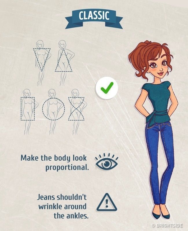 Τα τζιν με κλασικό μήκος, επιτρέπονται για κάθε σωματότυπο. Δίνουν στο σώμα τις σωστές αναλογίες.