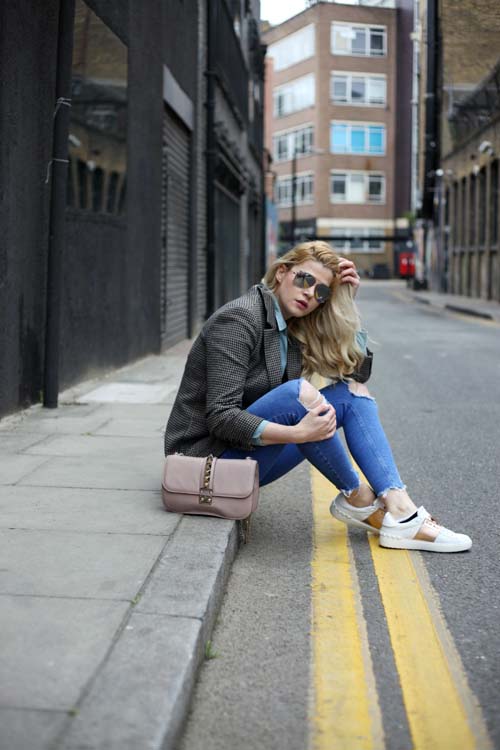 Για ένα κομψό ντύσιμο με sneakers επιλέξτε ένα skinny jean ή ένα κολάν, ένα σακάκι και ένα απλό, ζευγάρι αθλητικά παπούτσια και είστε έτοιμες.