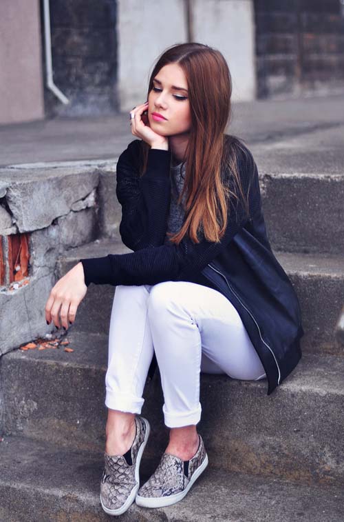Συνδυάστε τα sneakers σας δερμάτινο παντελόνι για πιο ροκ εμφανίσεις: