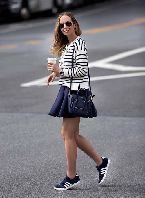 Συνδυάστε τα sneakers σας με φούστα (μίνι, μίντι, μάξι), με έναν τέτοιο συνδυασμό μπορείτε να δημιουργήσετε από ένα απλό πρωινό ντύσιμο μέχρι πιο βραδινό, ανάλογα πάντα με το ύφος των παπουτσιών και της φούστας που θα χρησιμοποιήσετε.