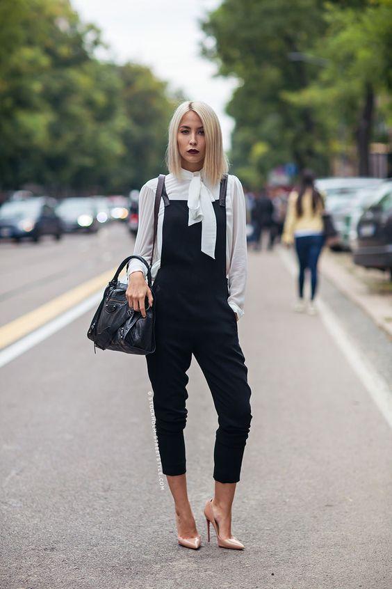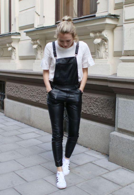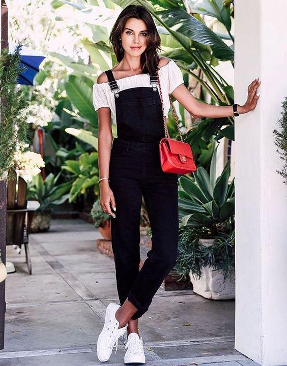 Όπως είπαμε και πιο πάνω, η σαλοπέτα μπορεί να υποστηρίξει τόσο μια casual όσο και μια επίσημη εμφάνιση. Παρακάτω δες πως μπορείς με μια μαύρη jean ολόσωμη φόρμα, ένα λευκό t – shirt κι ένα ζευγάρι λευκά sneakers να κάνεις μια μοναδική casual εμφάνιση!