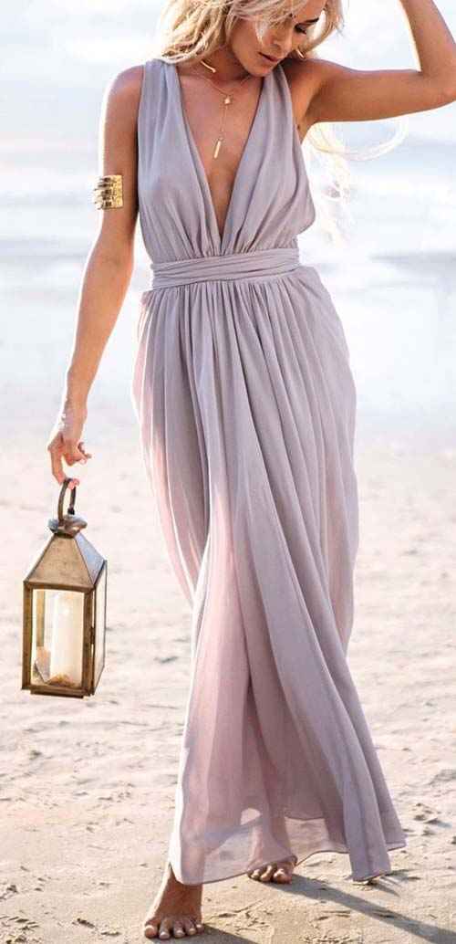 Αν μετά την τελετή του γάμου ακολουθεί δεξίωση σε κάποιο Beach bar, αυτό σημαίνει πως το ζευγάρι επέλεξε κάτι ανάλαφρο για την ημέρα εκείνη. Φροντίστε λοιπόν να ντυθείτε κι εσείς αντίστοιχα. Αποφύγετε τα πολύ βαριά υφάσματα, τα πολλά διακοσμητικά τύπου στρας, swarovski κλπ που έχουν τα περισσότερα βραδινά και αμπιγιέ φορέματα. Επιλέξτε ένα φόρεμα για γάμο πιο χαλαρό, αλλά εξίσου εντυπωσιακό και επίσημο.