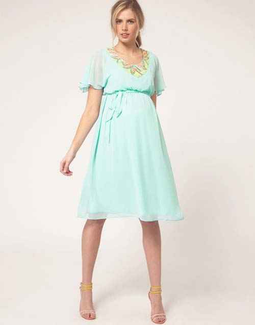 Για τις μέλλουσες μανούλες υπάρχουν ειδικά φορέματα εγκυμοσύνης που θα τονίσουν με ωραίο τρόπο την φουσκωτή κοιλίτσα τους. Φορέματα τόσο μέχρι το γόνατο, όσο και μακριά. Συνήθως τα υφάσματα από τα οποία είναι φτιαγμένα είναι πιο ελαστικά ή πιο αέρινα, έτσι ώστε να αφήνουν ένα περιθώριο στην κοιλιά και να μην την πιέζουν.