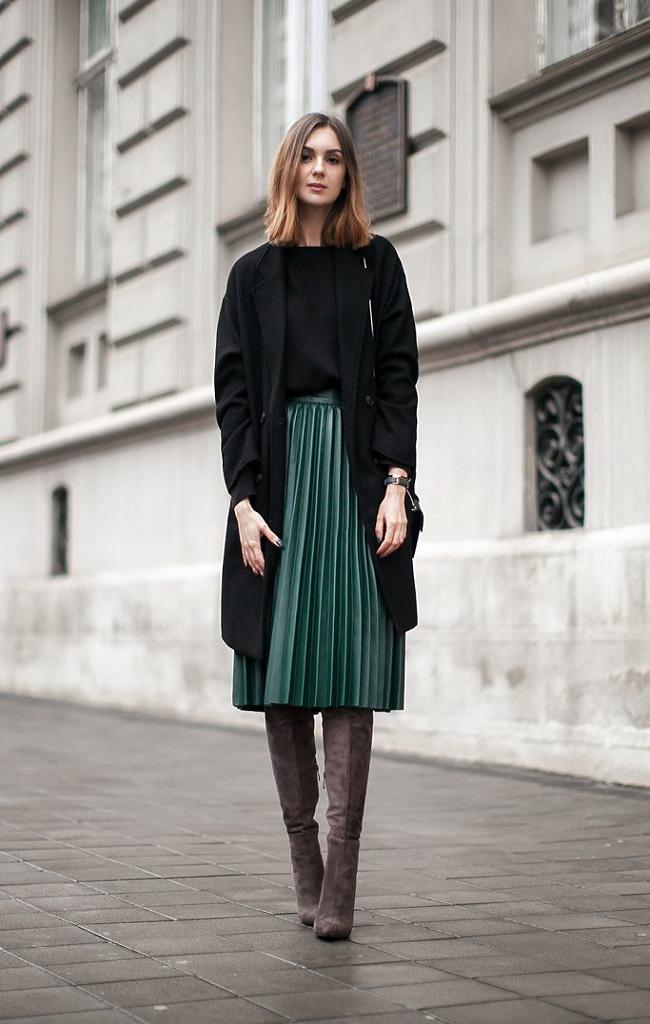Ο συγκεκριμένος συνδυασμός σε κρατάει ζεστή και κομψή ακόμη και τις πιο κρύες μέρες του φθινοπώρου. Δοκίμασε ένα ζευγάρι suede ψηλές μπότες, που δείχνει πάντα chic.