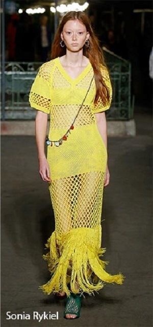 Μη διστάσεις να συνδυάσεις το κίτρινο με υφές εξίσου μοδάτες, όπως το δίχτυ και τα κρόσσια. Το αποτέλεσμα είναι άκρως θηλυκό, όπως δείχνει αυτό το catwalk στιγμιότυπο από την Julie de Libran και τον οίκο Sonia Rykiel.