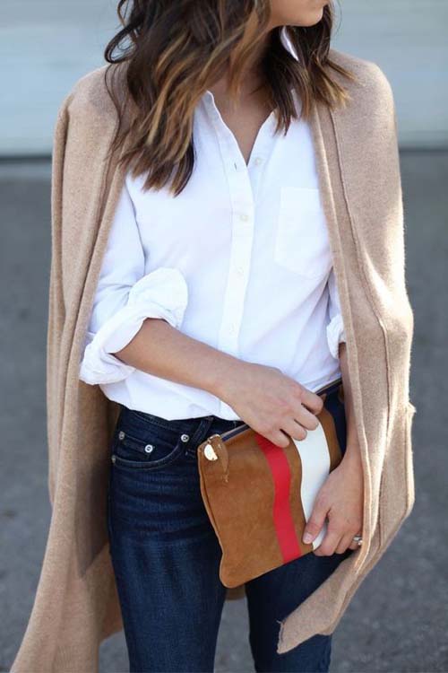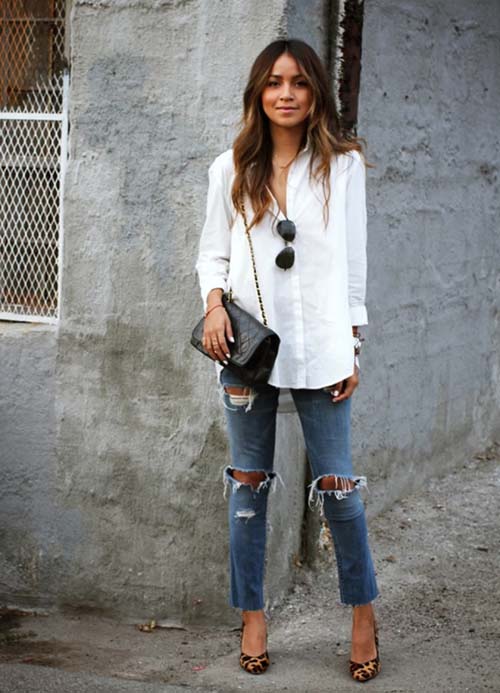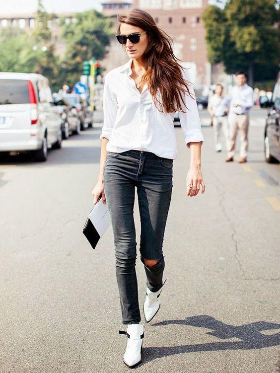 Είναι ένα κομμάτι που ταιριάζει με τα πάντα και μπορείτε να κάνετε αμέτρητους συνδυασμούς. Μπορείτε να το φορέσετε για να δημιουργήσετε υπέροχα casual outifis απλά. Συνδυάστε το λευκό πουκάμισο με ο,τι παντελόνι θέλετε βάζοντας το απλά από μέσα από αυτό. Από πάνω επιλέξτε ένα σακάκι ή ένα πουλοβεράκι ή διαφορετικά μια ζακέτα ή ένα δερμάτινο jacket. Ο,τι και να επιλέξετε το αποτέλεσμα θα είναι φανταστικό. Μπορείτε να επιλέξετε ψιλοτάκουνα ή ένα ίσιο παπούτσι όπως sneakers, oxford κτλ.