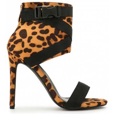 Λεοπάρ πέδιλα με ψηλό τακούνι και φάσα με λουράκια που αγκαλιάζει τον αστράγαλο – Olympic Stores