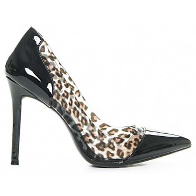 Μαύρες λουστρίνι ψηλοτάκουνες γόβες με λεοπάρ διαφάνεια στη μέση – Luigi