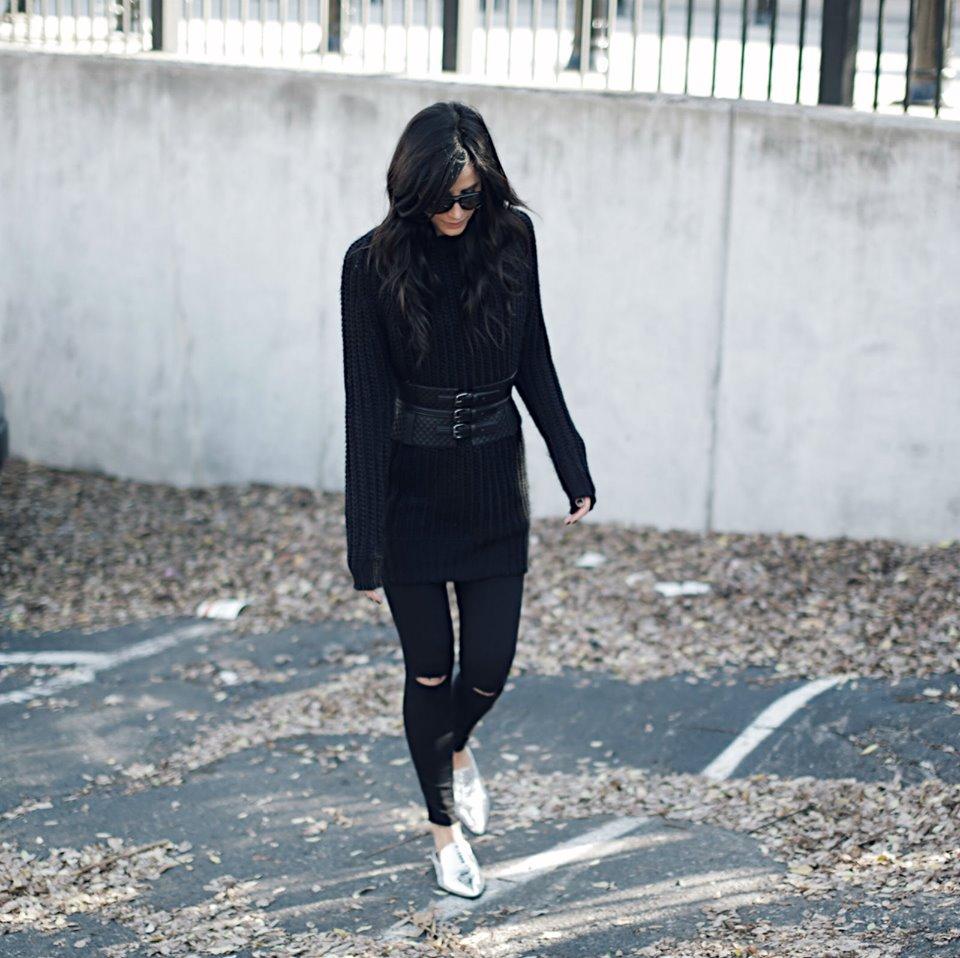 Φαρδιά ζώνη με mini φόρεμα και υπέροχες μπότες