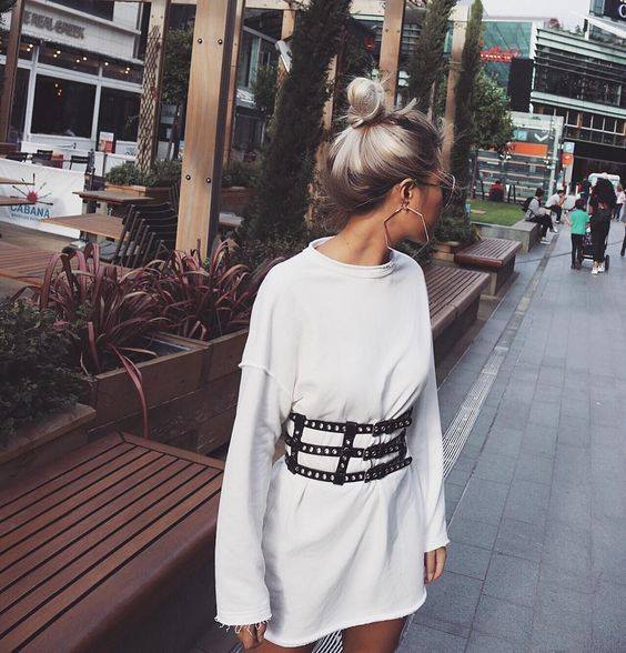 Φαρδιά ζώνη με τζιν παντελόνι και ένα απλό άσπρο μπλουζάκι, για πιο casual εμφανίσεις