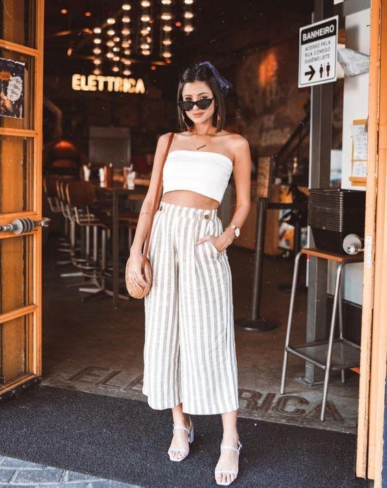 Πραγματικά, με οτιδήποτε. Οι καλύτεροι συνδυασμοί με τις παντελόνες είναι με τα κροπ τοπ και τα μπούστα. Προσέχετε, ωστόσο, να μην το παρακάνετε με την αποκαλυπτικότητα του μπούστου. Φορέστε το με τοπ και με πουκαμίσες χωρίς να φοβάστε για το ύψος σας. Συνδυάστε το με μακριά κολιέ, τα γυαλιά ηλίου σας και φυσικά την καινούρια ψάθινη τσάντα σας για το απόλυτο καλοκαιρινό look.