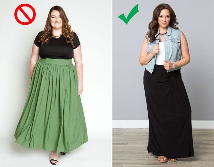 Οι μακριές φούστες είναι μια πολύ ωραία επιλογή για μια γυναίκα με παραπανίσια κιλά. Μπορεί να κρύψει τις χοντρές γάμπες και να κάνει τα πόδια να φαίνονται πιο μακριά, ειδικά αν συνδυαστεί με ψηλοτάκουνες γόβες. Η ιδανική επιλογή για μια εύσωμη γυναίκα είναι μια ψηλόμεση μακριά φούστα, η οποία θα κάνει ακόμα πιο έντονη την ψευδαίσθηση των μακριών και λεπτών ποδιών. Συνδυάστε τη με ένα εφαρμοστό μπλουζάκι, κορμάκι ή και crop top και είστε έτοιμη.