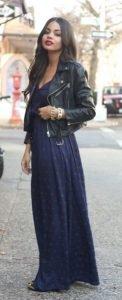 Ένα μακρύ φόρεμα σε συνδυασμό με ένα δερμάτινο τζάκετ, δημιουργούν μια αιθέρια εικόνα με μοδάτες πινελιές. Σίγουρα θα είσαι εντυπωσιακή και σικάτη.