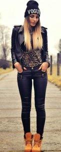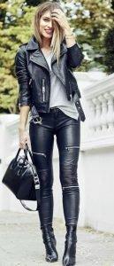 Ένα total leather look, συνιστά δερμάτινο παντελόνι και μπουφάν και σου χαρίζει ροκ στυλ και νεανική διάθεση. Είναι τέλειο για εσένα που σου αρέσει αυτό το look.