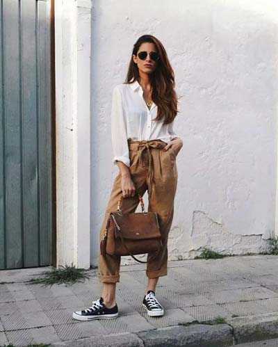 Street style και casual ντυσίματα με paper bag παντελόνι