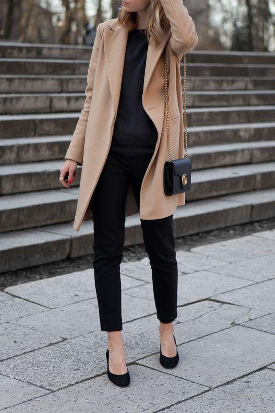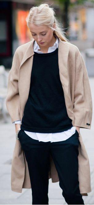 Η πρώτη ιδέα στη λίστα μας είναι ένα κομψό και ταυτόχρονα άνετο ντύσιμο που μια γυναίκα μπορεί να φορέσει στο χώρο εργασίας της. Για αυτό το σύνολο θα χρειαστείτε μια καπαρντίνα, κατά προτίμηση σε κάποιο χρώμα που θα ξεχωρίζει όπως μπεζ. Το μπεζ είναι ένα φθινόπωρο χρώμα που μπορείτε να το φορέσετε όλο το χρόνο.