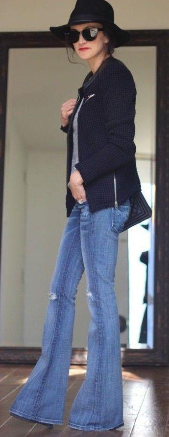Μπορείτε να φορέσετε ένα σκούρο μπλε τζιν που δεν χρειάζεται να είναι κολλητό αυτή τη φορά. Θα μπορούσατε να δοκιμάσετε κάποιο άλλο είδος τζιν, όπως τα τζιν καμπάνα. Το πάνω μέρος του συνόλου σας θα μπορούσε να είναι ένα άσπρο πουκάμισο που μπορείτε να το συνδυάσετε με ένα άσπρο σακάκι ή μαύρο ίσως γκρι ή με κάποιο δερμάτινο jacket. Αυτά τα χρώματα είναι ιδανικά για ένα περιβάλλον εργασίας.