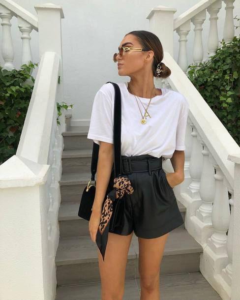 Διαλέξτε λοιπόν το αγαπημένο σας δερμάτινο σορτσάκι και συνδυάστε το με ένα ανάλαφρο λευκό t-shirt. Το λευκό t-shirt θα ισορροπήσει την εικόνα σας. Μπορείτε να πιείτε άνετες τον καφέ με τις φίλες σας ή το άλλο σας μισό.