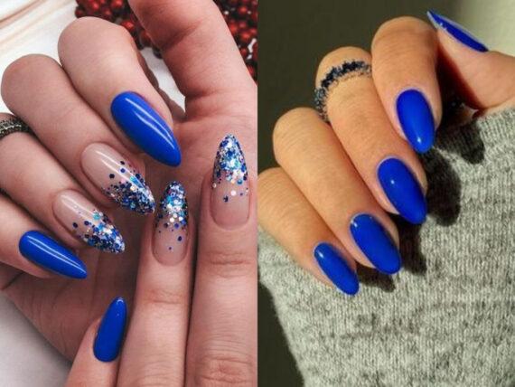 Εντυπωσιακές ιδέες για μανικιούρ σε μπλε ηλεκτρίκ χρώμα σε μακριά και κοντά νύχια, μυτερά, φυσικά ή τετράγωνα με γκλίτερ και σχέδια.