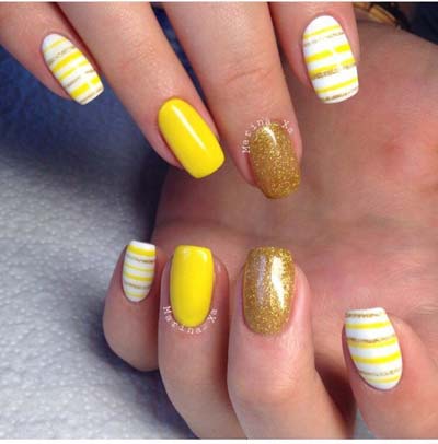 Το χρώμα μανό που έχει όμως φέτος την τιμητική του είναι το κίτρινο σε όλους τους τόνους. Απαλό υποκίτρινο ή μπανανί, αλλά και λεμονί ή φωσφοριζέ κίτρινο θα αποτελέσουν μια ενδιαφέρουσα και ξεχωριστή πρόταση στα σχέδια νυχιών του μήνα.
