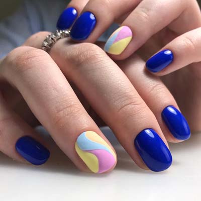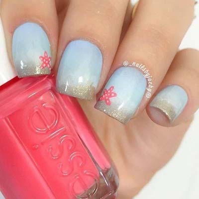 Το γαλάζιο βέβαια θα αποτελέσει φέτος το κορυφαίο παστέλ χρώμα για εντυπωσιακά καλοκαιρινά σχέδια στα νύχια. Μπορεί να συνδυαστεί υπέροχα με λευκό ή ασημί, αλλά και με τα υπόλοιπα παλ χρώματα.