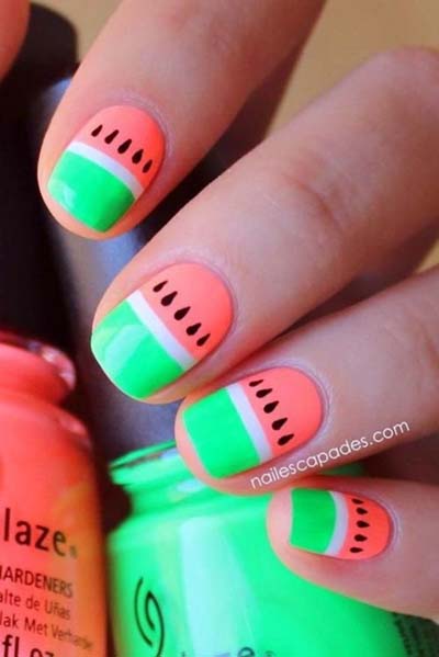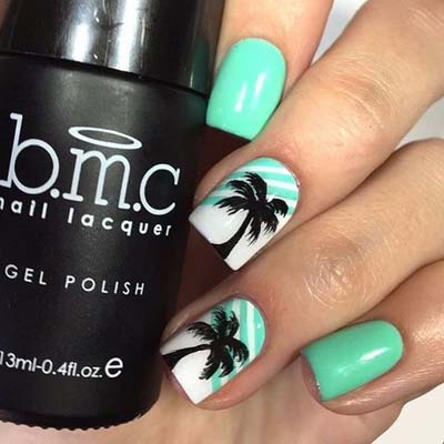 Μια από τις πιο καλοκαιρινές ιδέες αποτελούν τα τροπικά σχέδια νυχιών με φοίνικες κλπ. Σε περίπτωση ωστόσο που προτιμάτε πιο διακριτικά nail art σχέδια, οι γραμμές και τα γεωμετρικά σχήματα είναι εξίσου εντυπωσιακά.