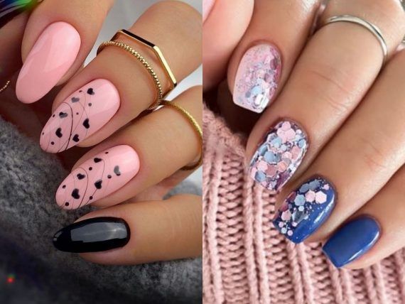 Νύχια Μαΐος 2022 : Ροζ και μαύρα νύχια με καρδούλες