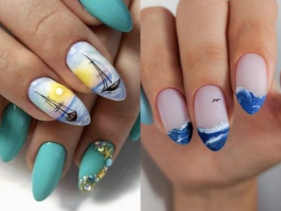 Καλοκαιρινά νύχια με σχέδια από την θάλασσα. Καράβια, βαρκούλες, κύματα, ηλιοβασιλέματα σε παραλίες και γενικότερα θαλασσινές αναπαραστάσεις που θα κάνουν τα νύχια σας να μοιάζουν με έργο τέχνης. Αν πάλι αυτό το βρίσκετε υπερβολικά έχουμε ιδέες και για νύχια σε θαλασσινές αποχρώσεις.